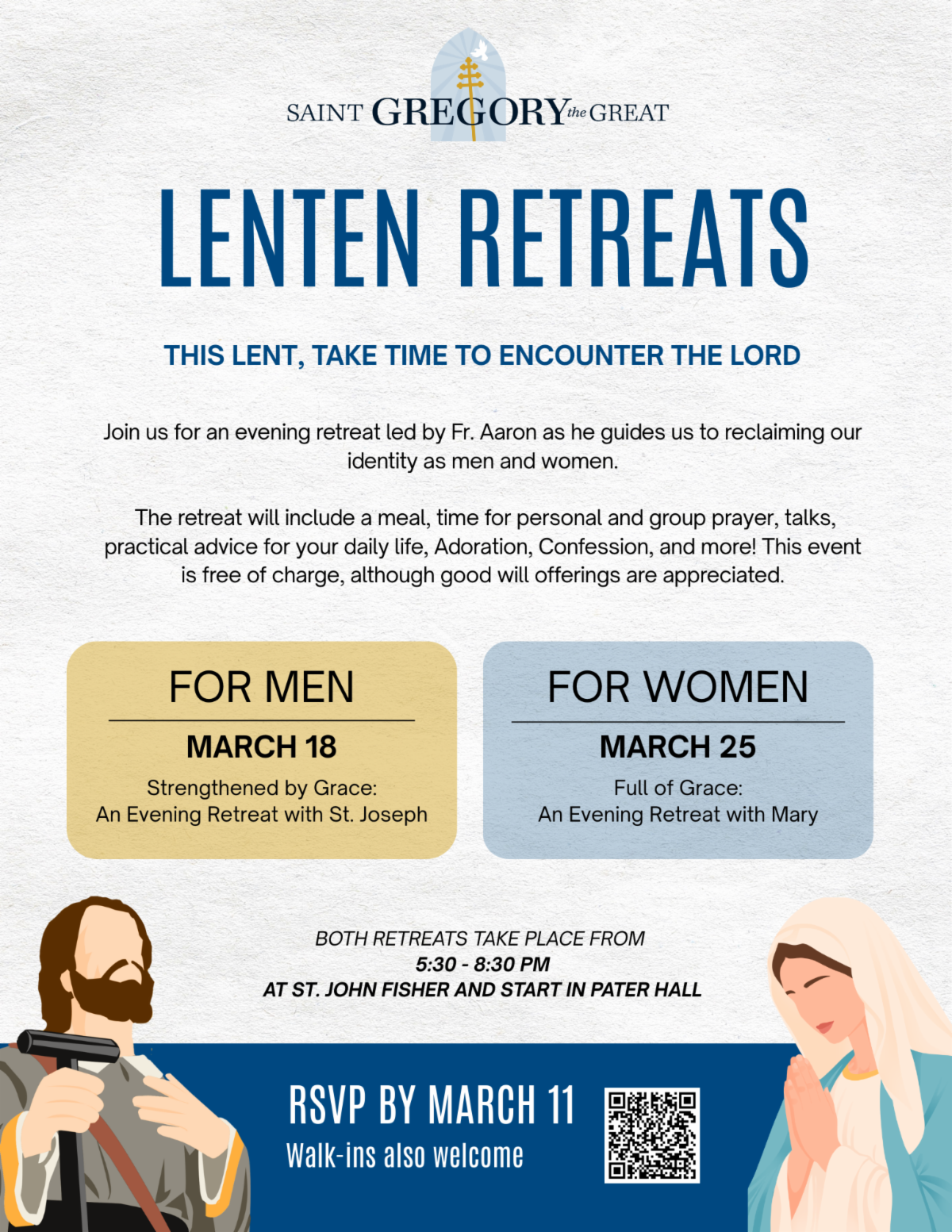 | | Save the Date: St. Gregory the Great Mass and Reception | | Young Men’s Faith & Fellowship | | |