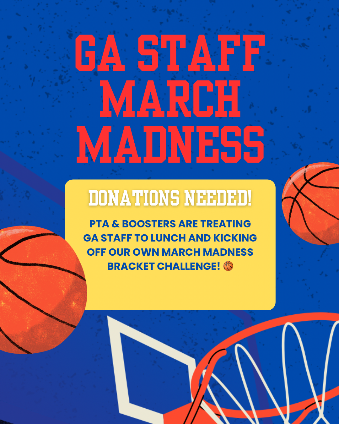 PTA & Boosters are treating GA staff to lunch — and kicking off our own March Madness bracket challenge!