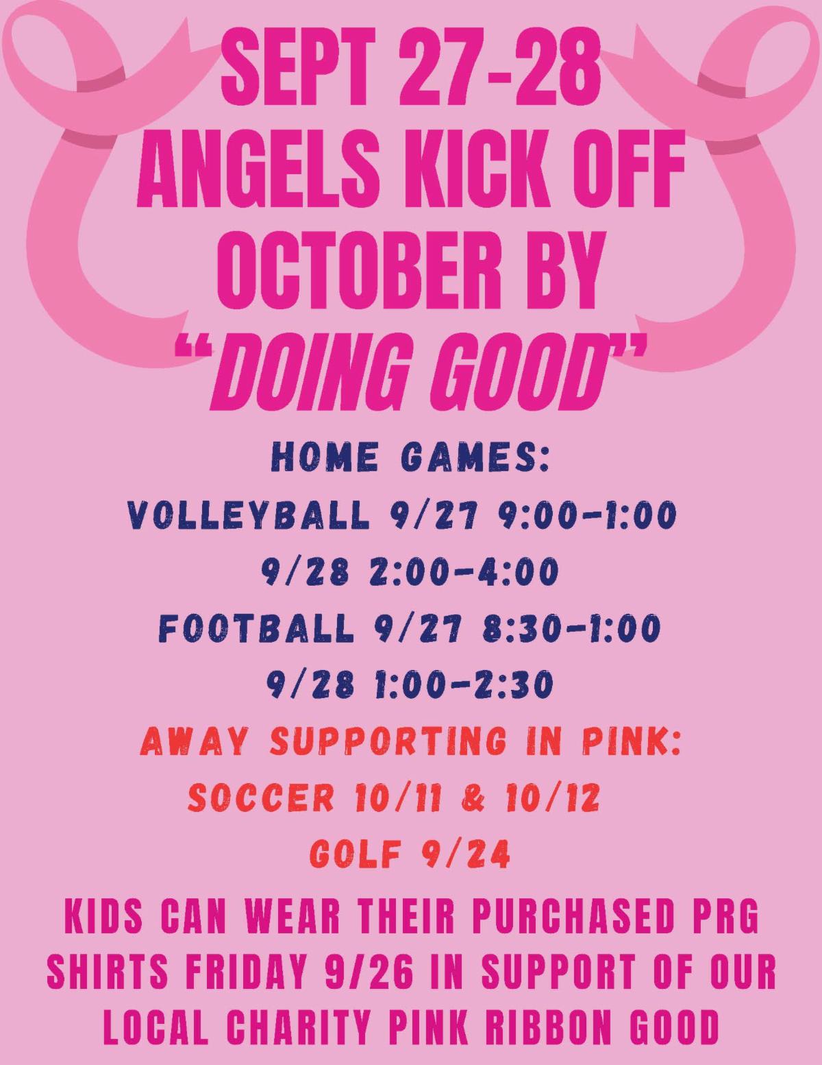 | | Home games will have more ways to donate! Bake Sales! Split The Pot! Pink Swag For Sale! AND MORE! Come join our ANGELS doing "GOOD" ! | | |
