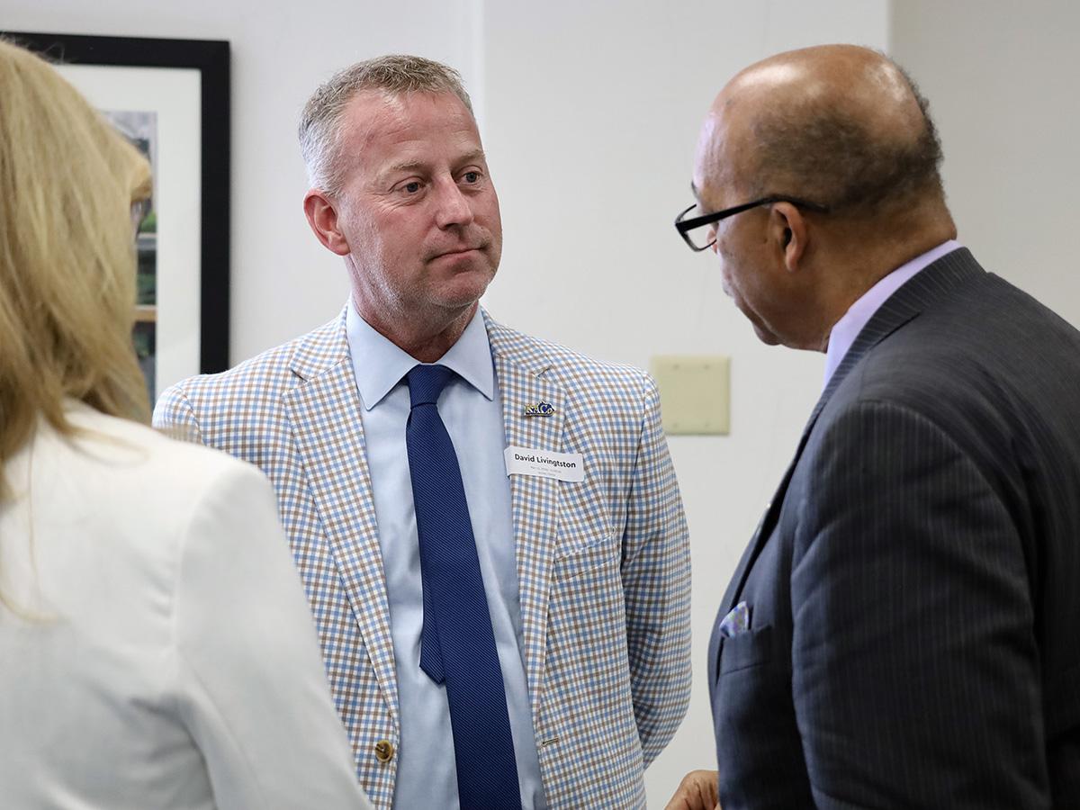 KACo President David Livingston speaks with Senate Minority Caucus Chair Reggie Thomas and KACo Government Affairs Director Shellie Hampton at KACo's annual legislative appreciation luncheon. | |