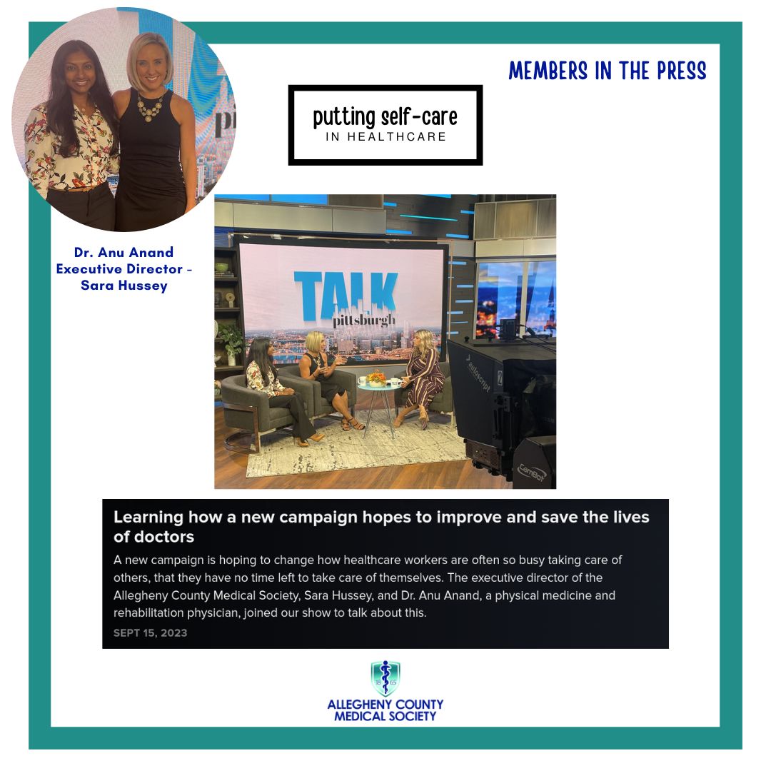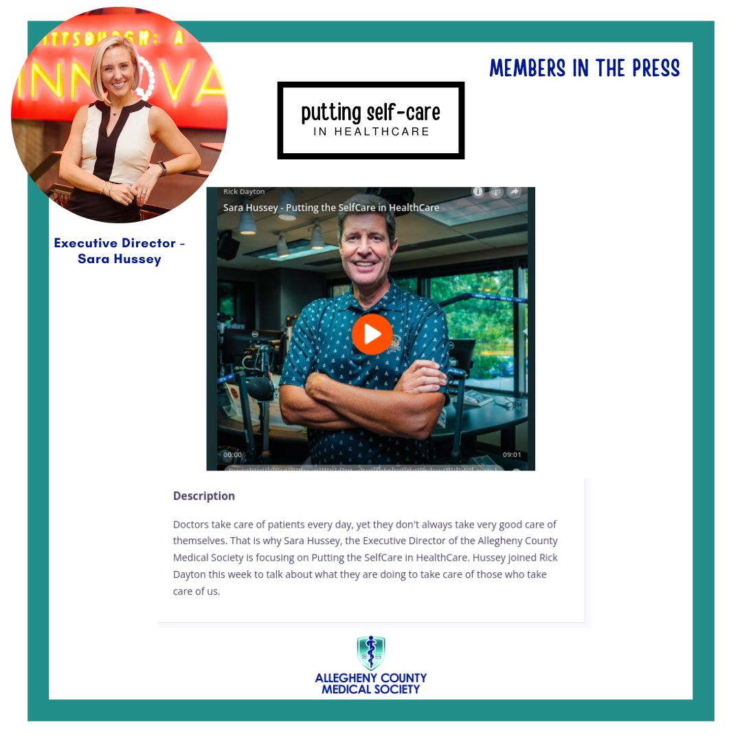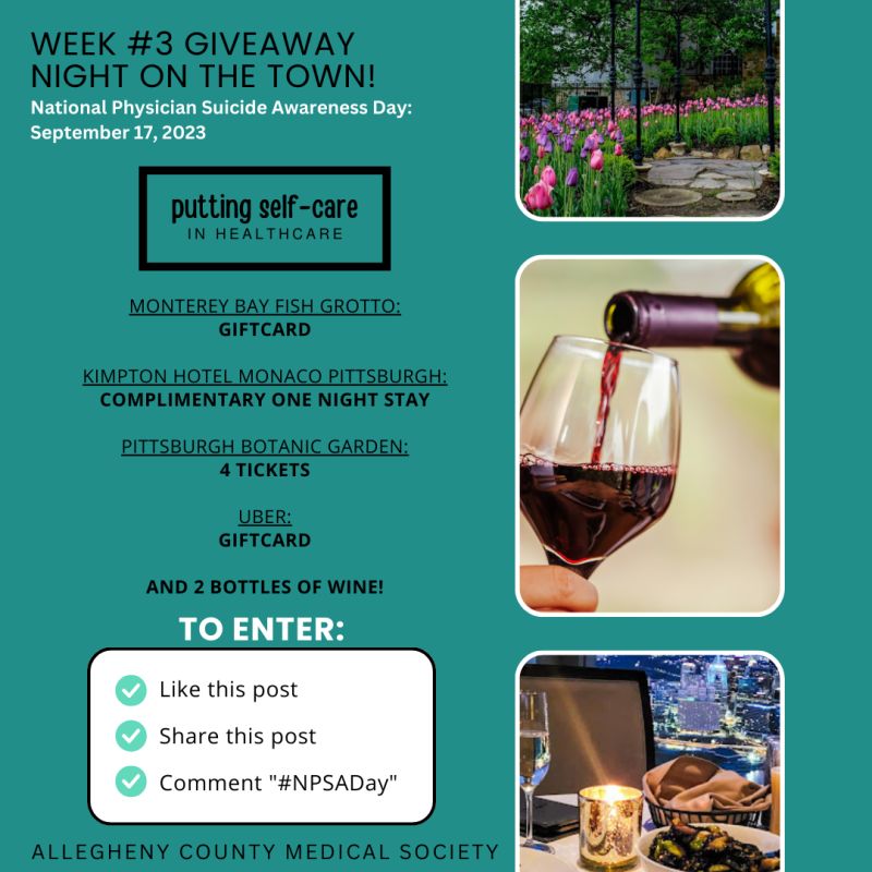 Throughout this entire month, the Allegheny County Medical Society has been committed to our campaign, 'Putting Self-care in Healthcare.' We are dedicated to raising awareness about physician suicide. Our aim is to prioritize reducing burnout, safeguarding job satisfaction, and promoting the idea that seeking mental health services is a sign of strength, not weakness.