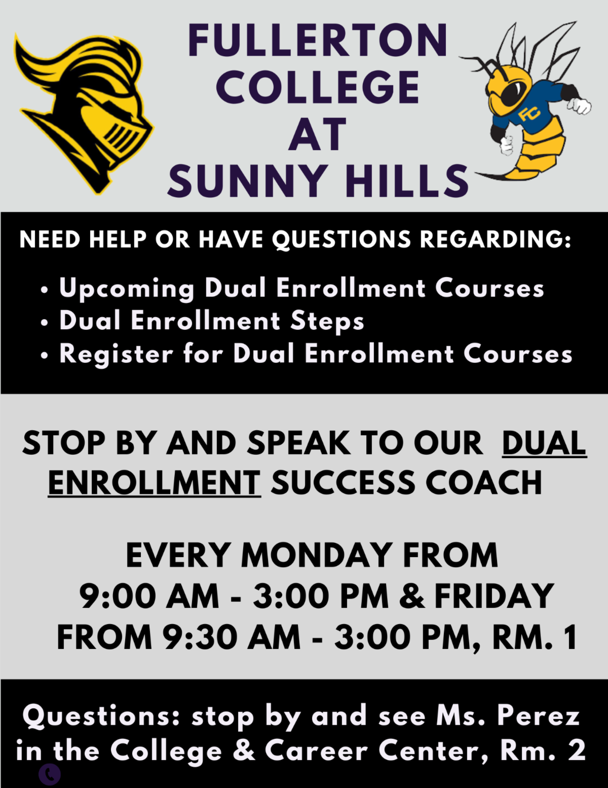 Spring '26 Dual Enrollment process has started. If you are interested in taking any of the courses that Fullerton or Cypress College is offering look at the flyers below. Please complete the necessary steps before the October 17th, 2025 deadline.