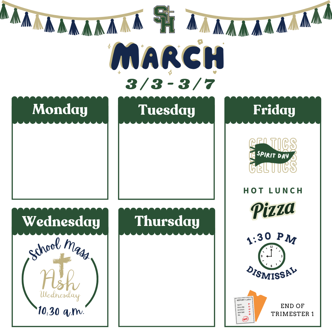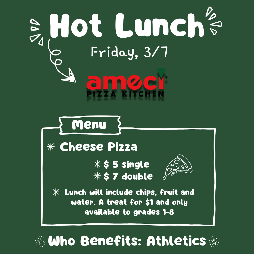 Hot Lunch this week will be from Ameci’s, with proceeds supporting our Athletics program. Since we are in Lent, only cheese pizza will be available.