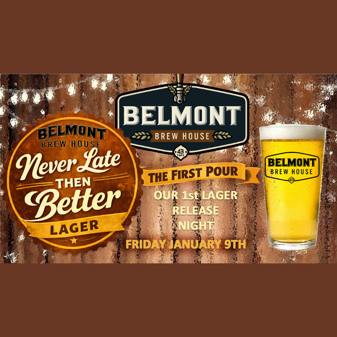6:00 pm - 9:00 pm: Never Late Than Better: The First Pour Lager Release Night at BELMONT BREW HOUSE