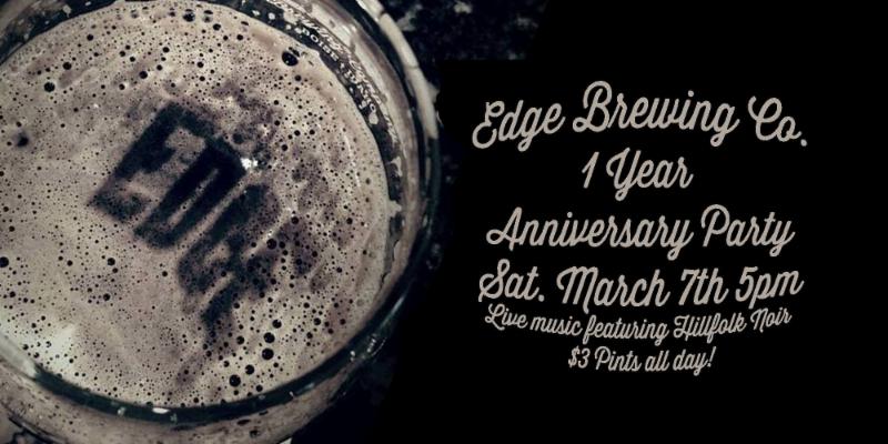 * 5:00 pm - 11:00 pm: 1-Year Anniversary Party @ EDGE BREWING CO!
