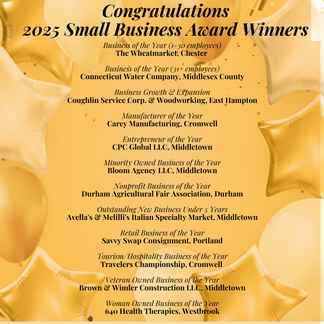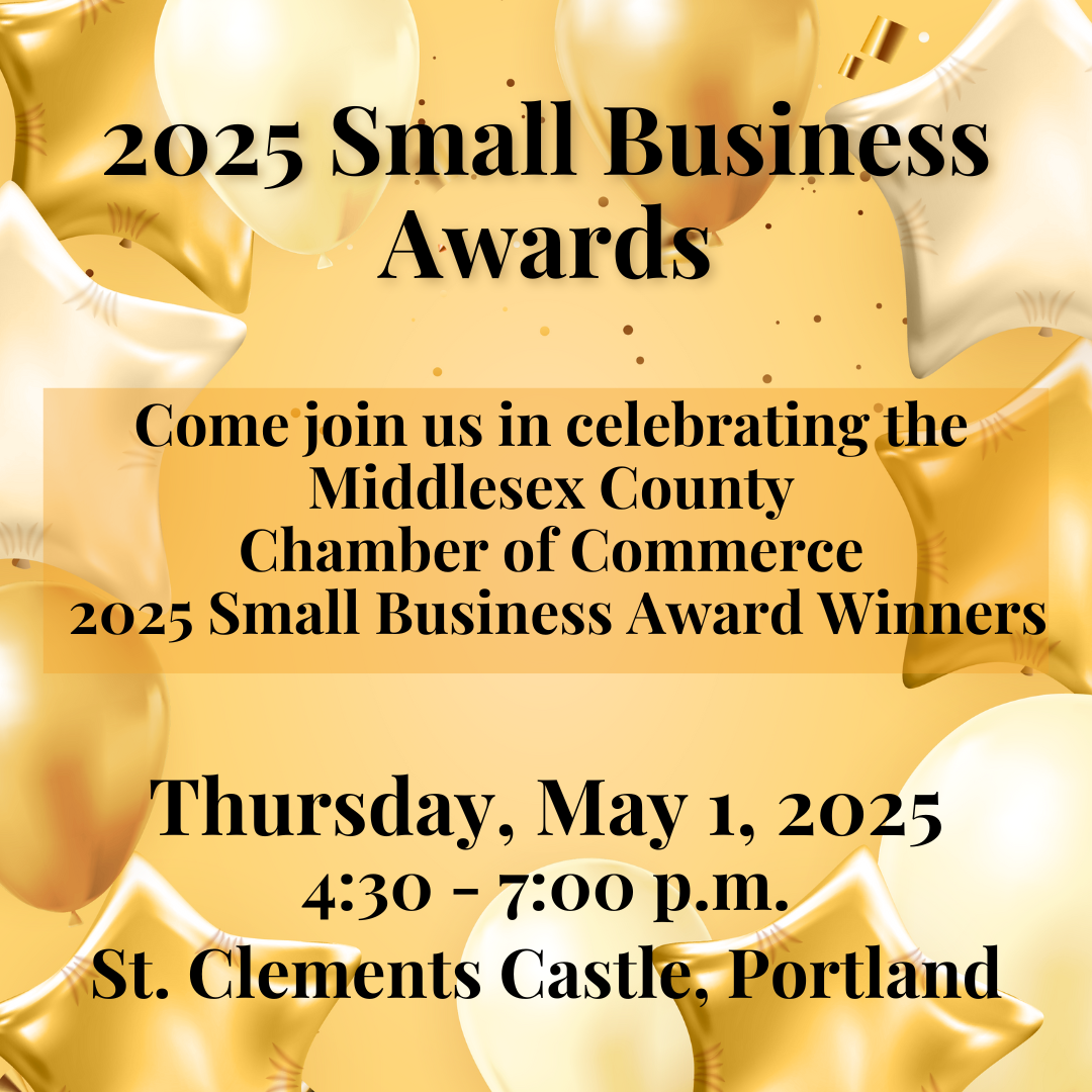 Looking ahead to May, join us as we celebrate 12 chamber members during our 2025 Small Business Awards Ceremony on Thursday, May 1 at St. Clements Castle, Portland. This year, we are proud to once again present 12 awards to very deserving Middlesex Chamber members throughout the county and beyond! Our 2025 Small Business Champions are as follows: