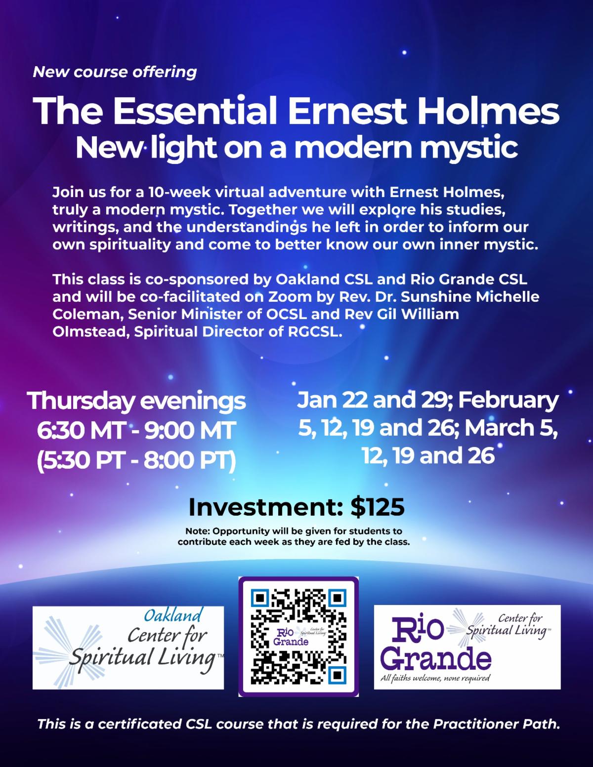 Journey of One: Join Dr. Michele Coleman in the exploration to express the oneness that we are. Next Sunday, Rev Geo will join our next Oneness meeting to facilitate the Way of Mastery. This work is from the same author as ACIM, Jeshua. Geo has shared the link to the first book which also has the recording of the original channeling. Anyone is welcome to join the book study. Held at noon(ish) every other week in the sanctuary on Sundays. Sunday, January18th