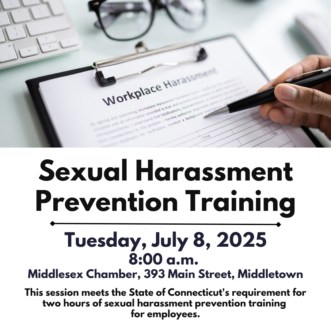 Next Tuesday, we will be hosting our biannual Sexual Harassment Prevention Training Workshop on Tuesday, July 8 from 8:00 – 10:00 a.m. at the Chamber Office. The definition of sexual harassment, liability (your own and your organization's), and the prevention of sexual harassment in the workplace will be discussed. Attorneys from the law firm Jackson Lewis, P.C. will show you how to limit your company's exposure to charges of sexual harassment. Please arrive on time. Two hours mandatory attendance is required to receive certificate. To join us, register here.