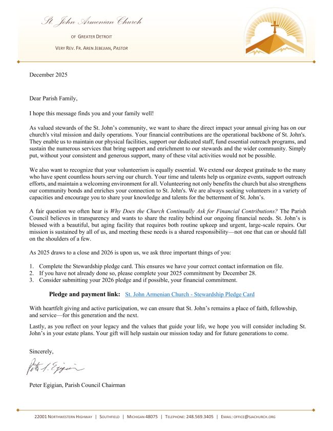 • Search and select St. John's Armenian Church; or search for our Organization Number QY207