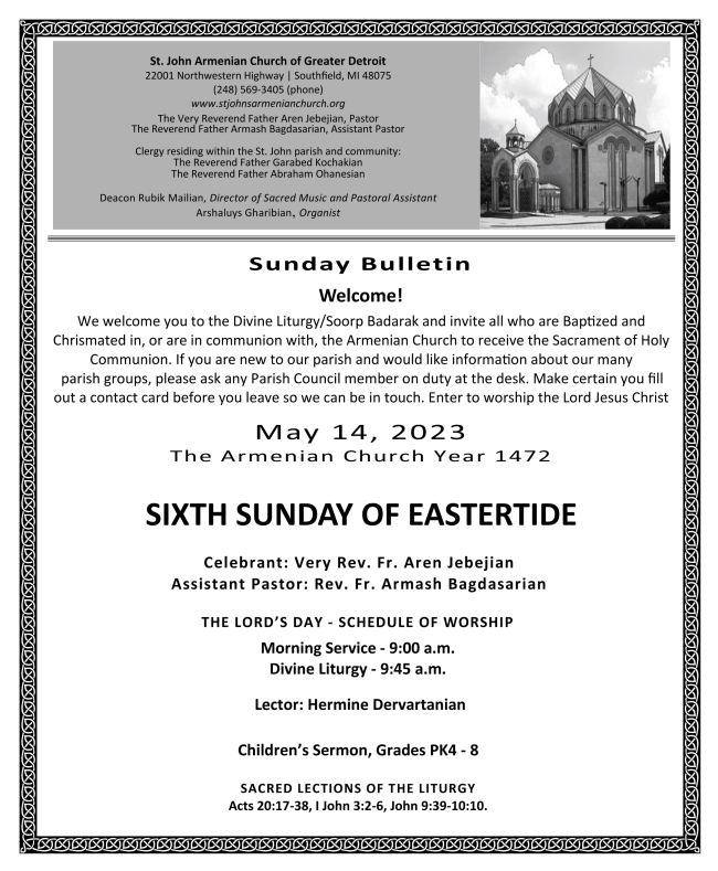 CHURCH SCHOOL CALENDAR FOR MAY 14, 2023