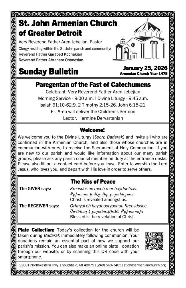 Following Divine Liturgy - Annual Parish Assembly Meeting
