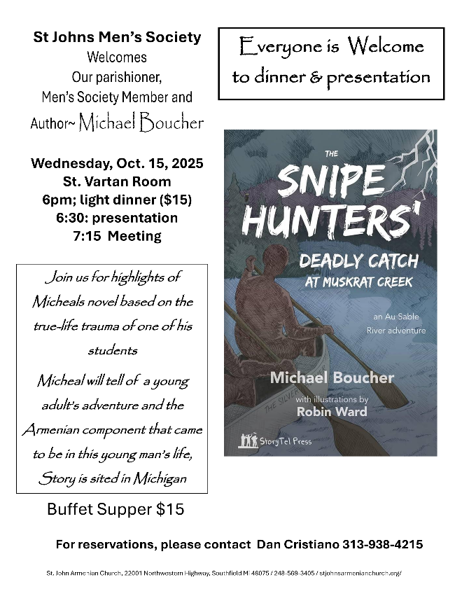 October 15 - Men's Society - Dinner and Presentation (Michael Boucher)