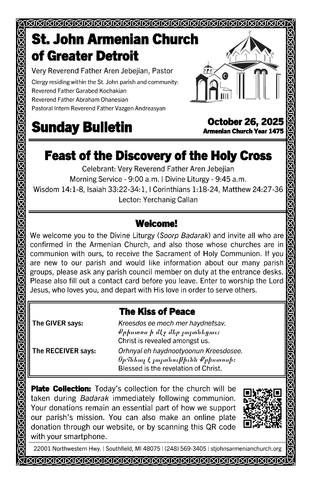 October 31 - Women in The Armenian Church (Dr. David Zakarian)