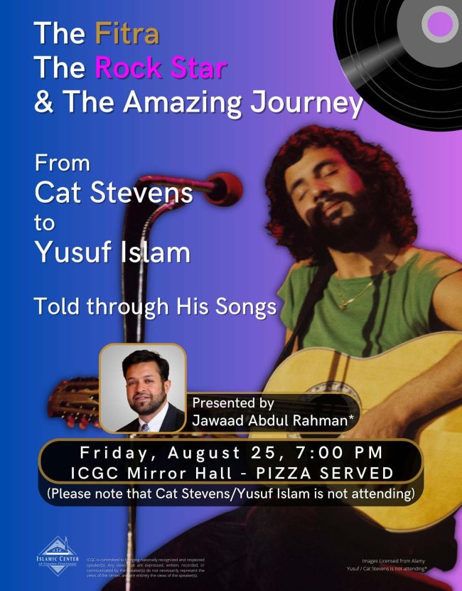 When he embraced Islam and changed his name to “Yusuf”, his fans were shocked, but his lyrics tell a different story. The presentation will share his story, touching on many Islamic concepts in an entertaining way.