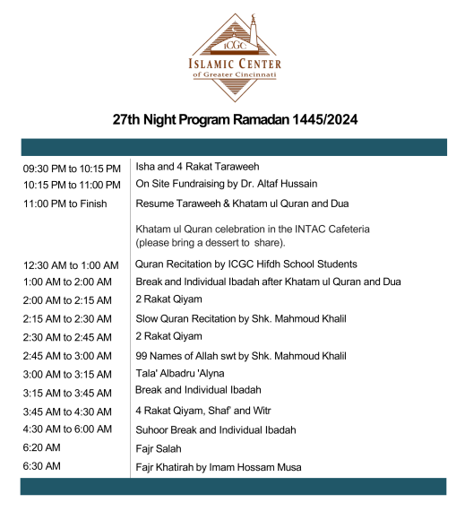 Prayer + Khtbah: 7:30 - 8:00 AM
