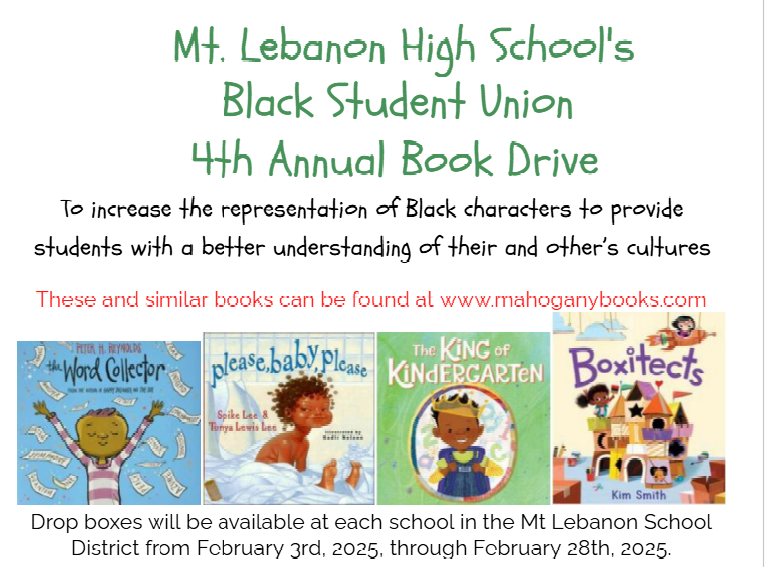 For the fourth year, the BSU is hosting a book drive from February 3 through February 28. To encourage donations from students, families, and community members, collection boxes will be placed in the foyer of every school building.