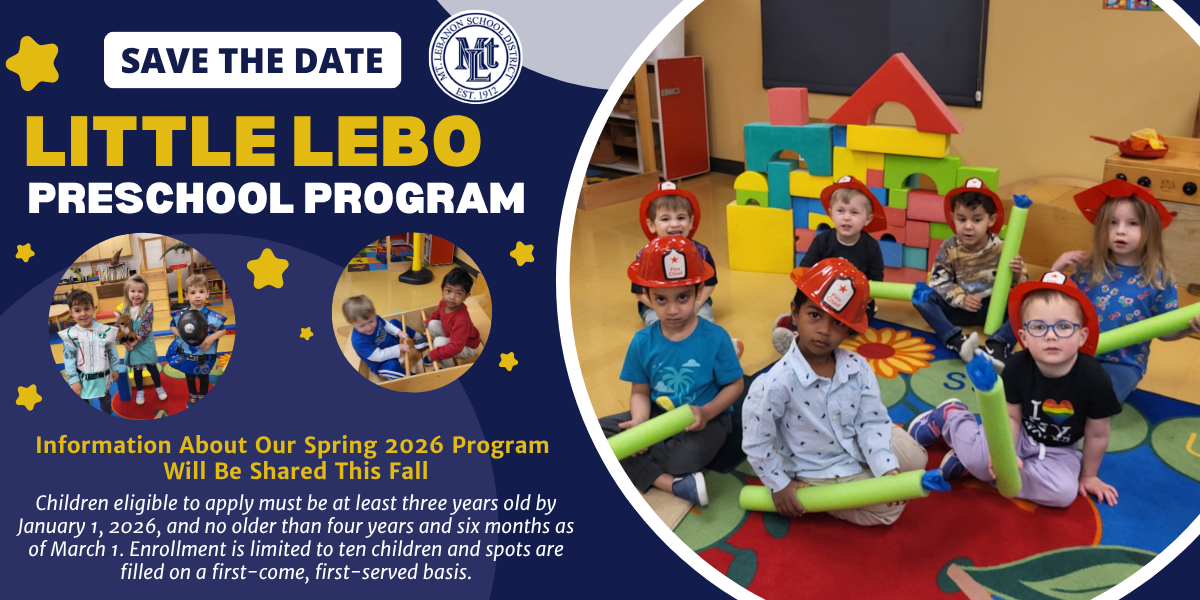 Our “Little Lebo” preschool program will return in Spring 2026! This unique, part-time preschool experience, held at Mt. Lebanon High School, offers engaging, hands-on learning for our youngest students.