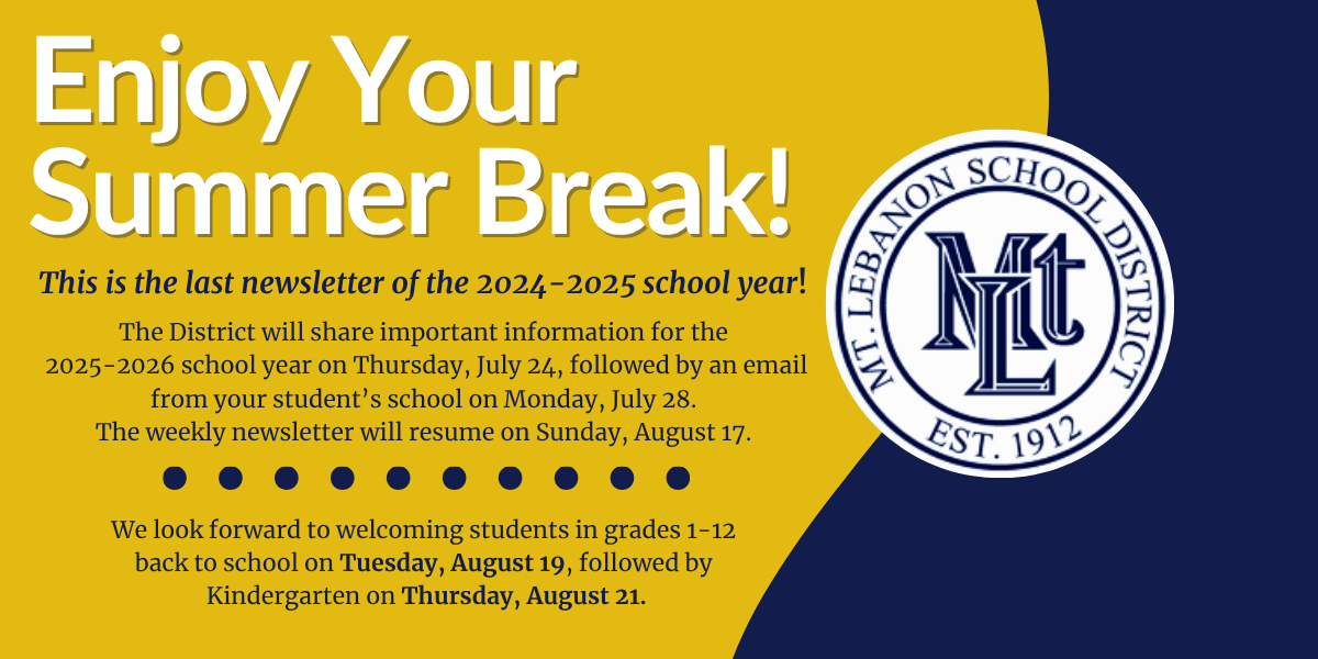 As the school year comes to a close, we wish all Mt. Lebanon students, staff, and families a joyful, restful, and sunshine-filled summer!