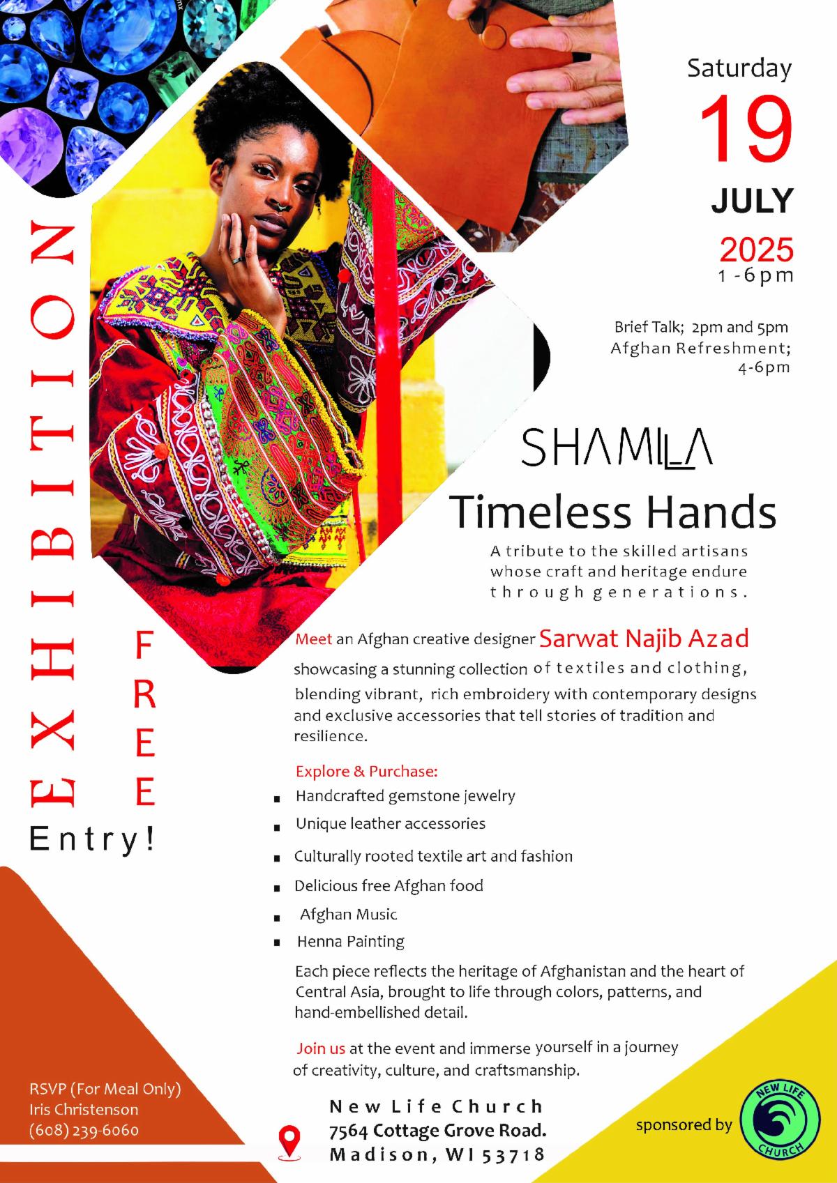 Our Social Purpose Team is sponsoring this special event on July 19th as a way to support our Afghan neighbors and friends. Invite a friend and come for any part of the event that fits your schedule. Contact Iris Christenson if you have any questions (608) 239-6060.