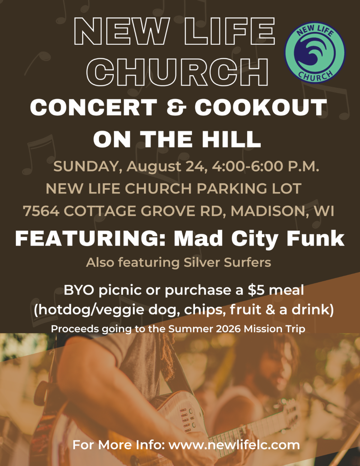 Come celebrate the coming of fall with an end of summer bonfire in our New Life firepit on Wednesday August 27 at 6pm. Bring your own dinner and drink, and a chair if desired, but s'mores will be provided. Join in this time to share where you saw God this summer and what you're looking forward to in this new season. All are welcome!