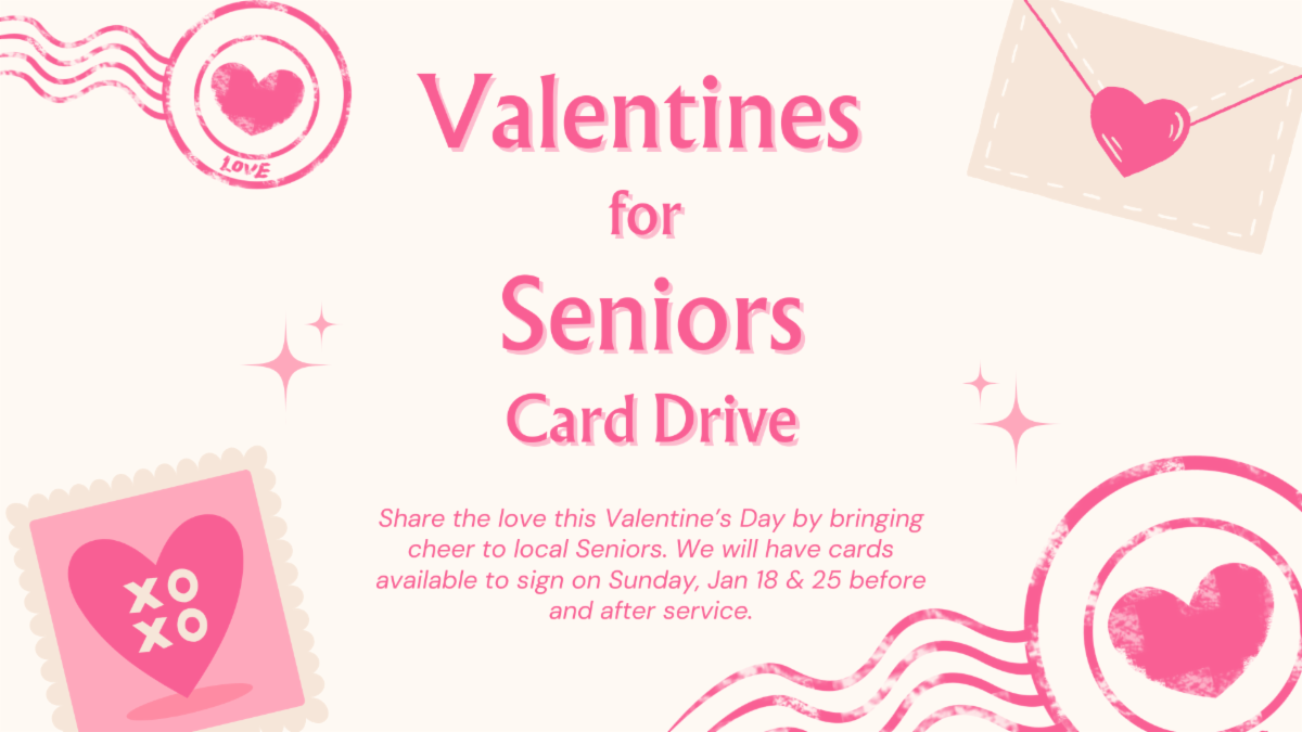 Share the love this Valentine’s Day by bringing cheer to local Seniors. We will have cards available to sign on Sunday, Jan 25 before and after service.