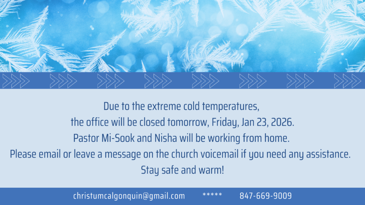 While I was preparing this week’s message, I saw a tagline saying, “If you want to change your habits, let God change your hearts.” That is not wrong. We have to let God’s grace work in us. At the same time, I know that it can work the other way around through my own experience: God changes us when we are willing to change. Sometimes we experience the mysterious power of God unexpectedly, like a sudden thunderclap. But more often God works through us when we give ourselves to work consistently and faithfully. So, I’d say that if you change your habits, your heart and mind will change.