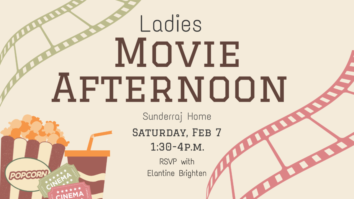 Join us for an afternoon of watching a movie together at the Sunderraj house. Bring a snack and drink to share. Please RSVP with Elantine Brighten.