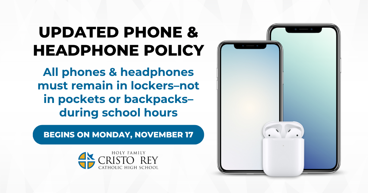 To support a focused learning environment and follow updated state guidelines, Holy Family Cristo Rey has implemented a new Cell Phone & Headphone Policy.