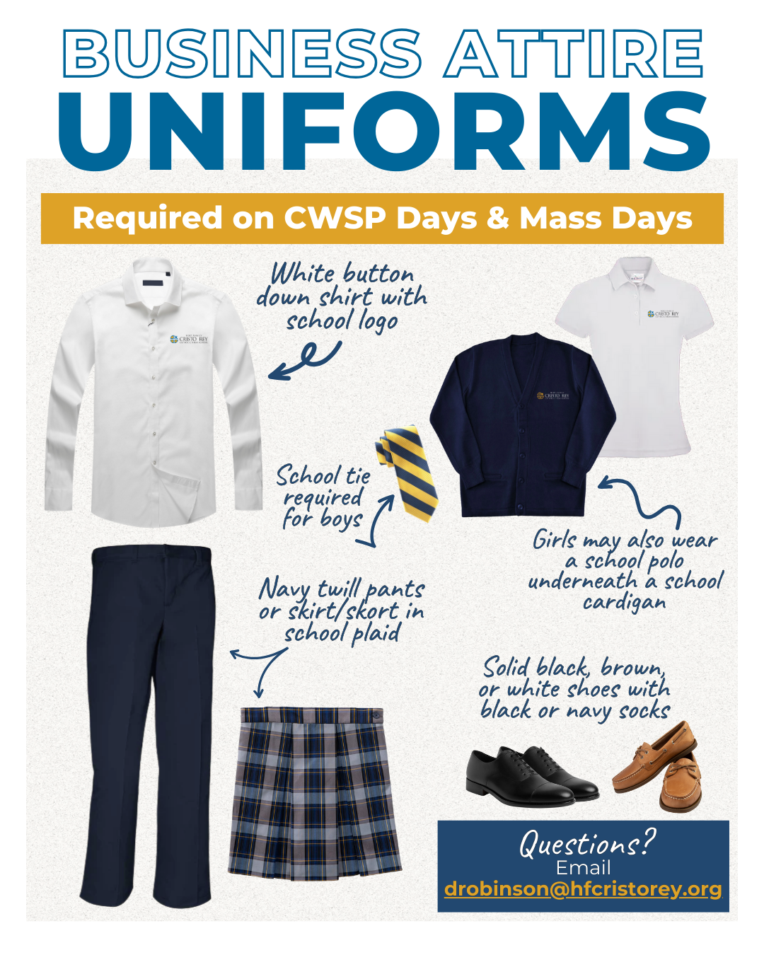 • Morning Assembly Schedule: All students must wear Mass Attire