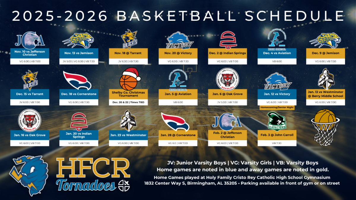 • 6:00 PM: Varsity Boys' Basketball Game vs. Alabama Aviation & Aerospace High School in the HFCR Gym
