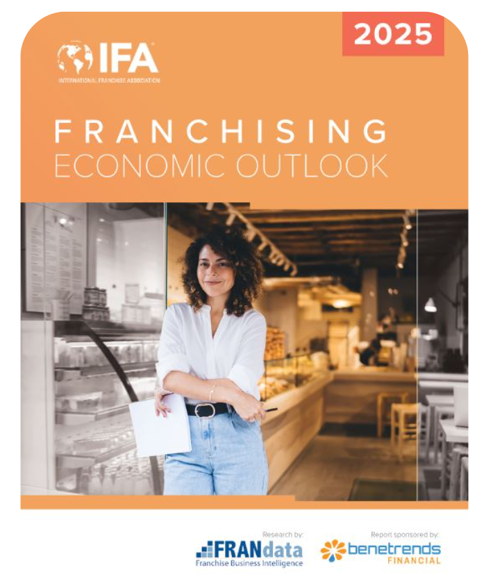 Today, IFA released its annual Franchising Economic Outlook showing that franchise growth exceeded projections for the past year and will once again outpace the growth of the broader economy in 2025. On top of the 2.2% growth experienced in 2024, which exceeded the 1.9% projection, the report forecasts that franchises will grow an additional 2.4% in 2025, a faster rate than the 1.9% projected for the broader economy by the Congressional Budget Office (CBO). | |