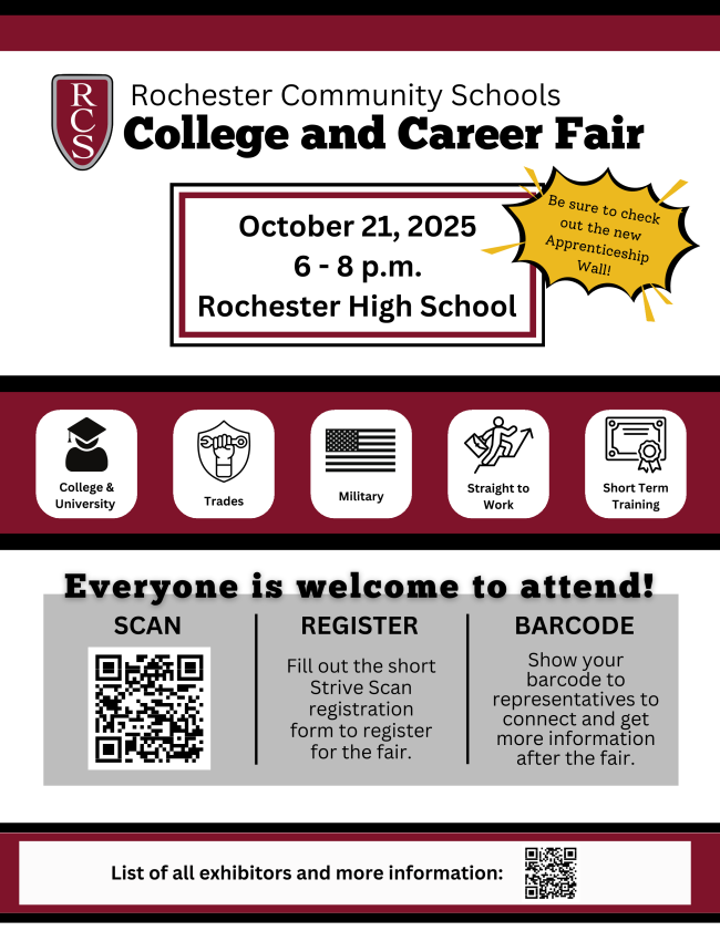 | College & Career Night – October 21st at Rochester High School | All students are invited to attend College & Career Night on Monday, October 21st, from 6:00–8:00 PM at Rochester High School. Over 67 two-year and four-year colleges and universities will be on site, along with opportunities to explore apprenticeships, military careers, fire, police, EMT, and other public service pathways. Students can register ahead of time through StriveScan here. Don’t miss this chance to connect with colleges and learn about career options. | | We’re excited to share that junior Kate Kalcynski has been named to the Top 10 list for Volleyball Player of the Year presented by State Champs! Sports Network. Now it’s up to the community to help decide who takes home the title! We’d love to see Mercy rally by casting your votes and spreading the word. Vote here. | | |