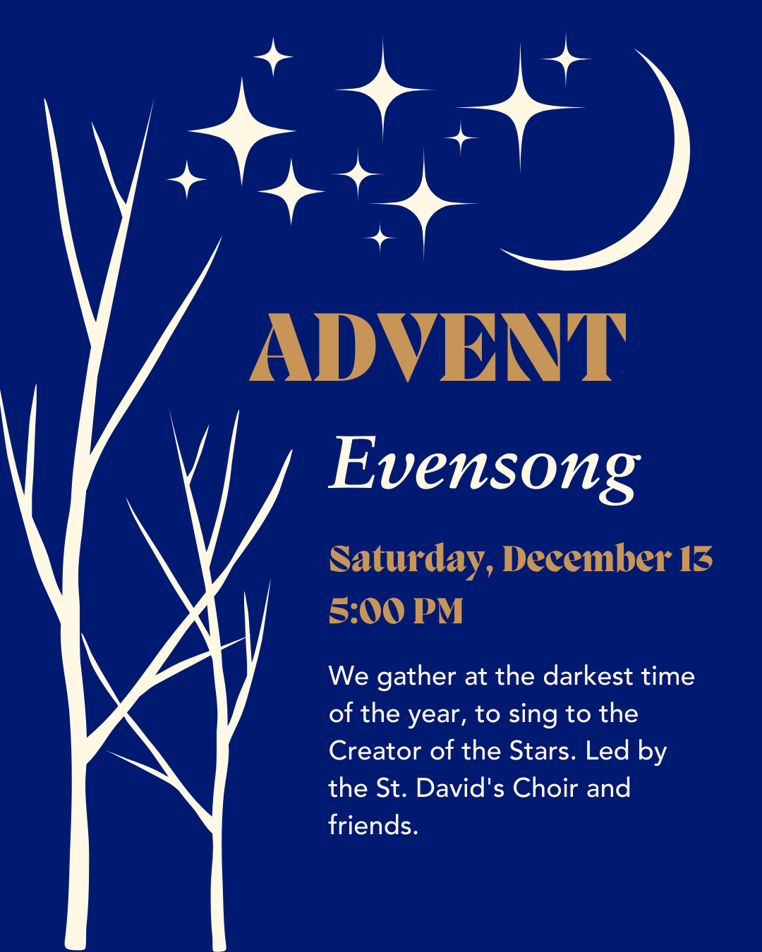 St. David’s will host a reception in the Undercroft following the Christmas Eve worship service. If you are able, please bring an appetizer or dessert to share. St. David’s will provide beverages.