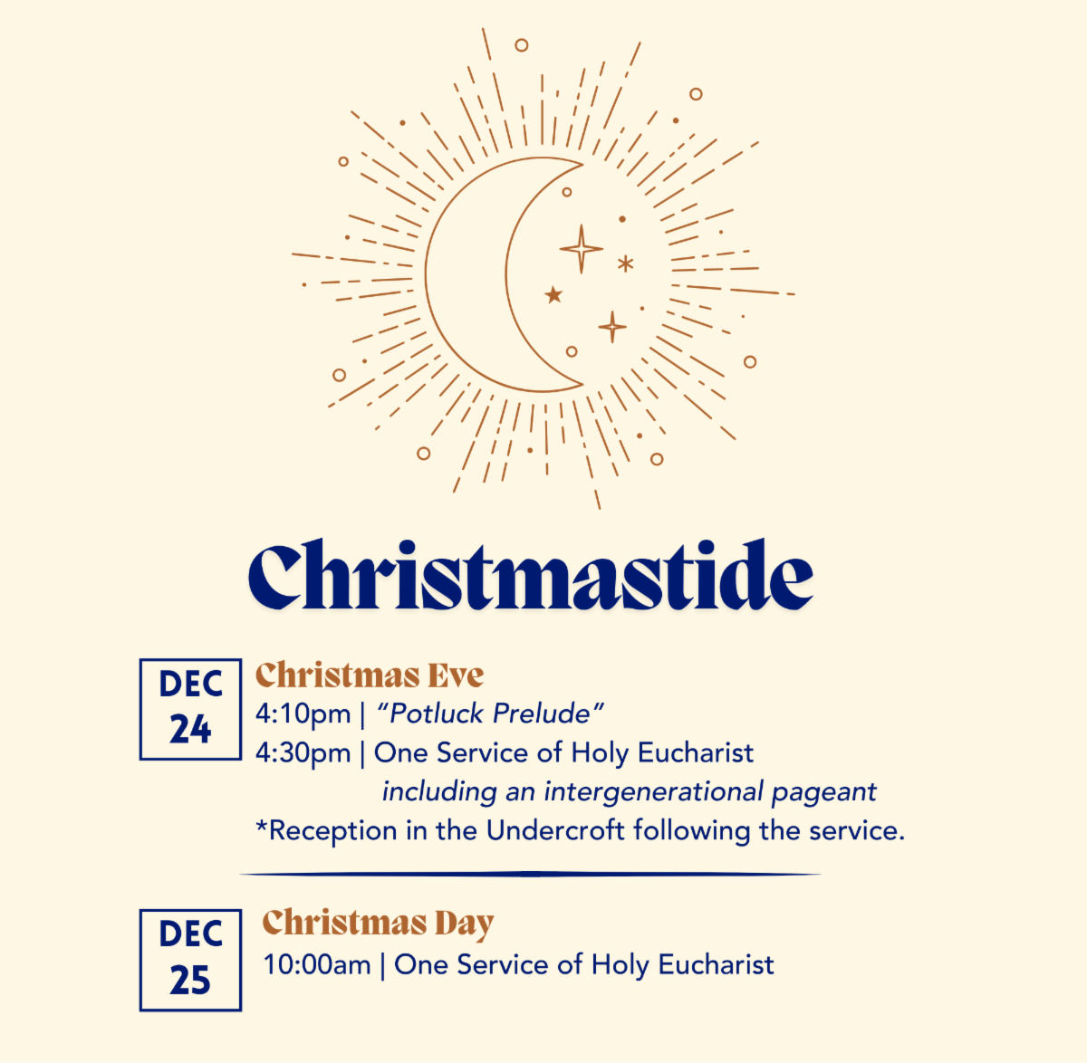 Singers and instrumentalists of all ages are invited to join our intergenerational choir and instrumental ensemble for the Christmas Eve liturgy. The music will be easy, familiar and joyful.