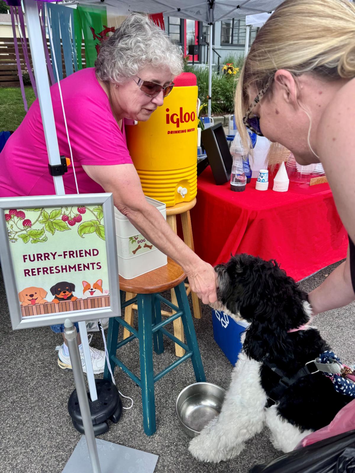 What do you call 800 cups of delicious raspberry infused water served, 95 heartfelt gratitude sticks handwritten, too numerous to count “smiling” dogs refreshed , myriads of colorful stickers enjoyed, and many smiling hot faces spritzed? We call that another successful and meaningful time with our neighbors down on Mainstreet at the Hopkins Raspberry Festival!