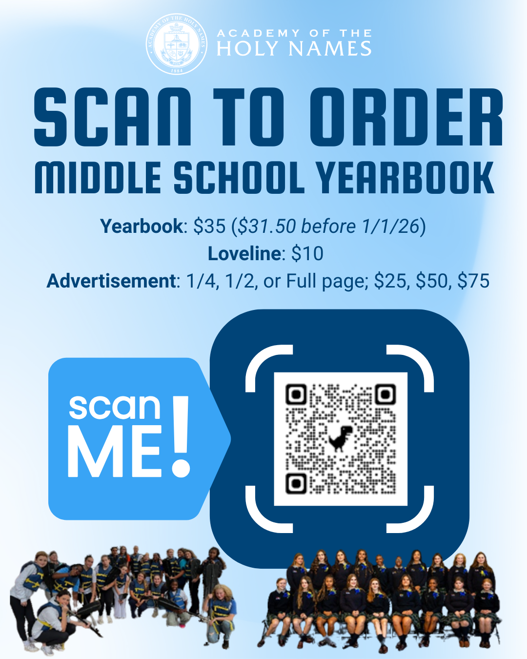 Attention: High School families! We’re excited to announce a special one-week-only yearbook ordering window, running next week, December 8–12!