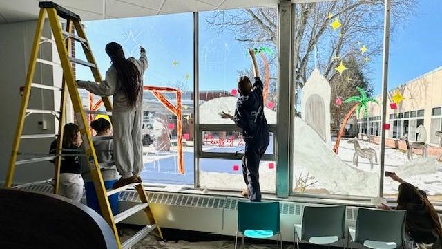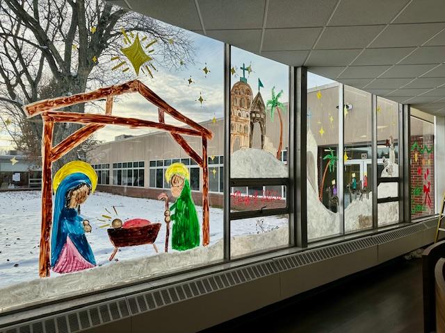From Santa Claus and Penny the Panther to the Nativity scene, students' artistic talents are once again on full display as the annual Christmas window sketching and painting took place in the Commons.