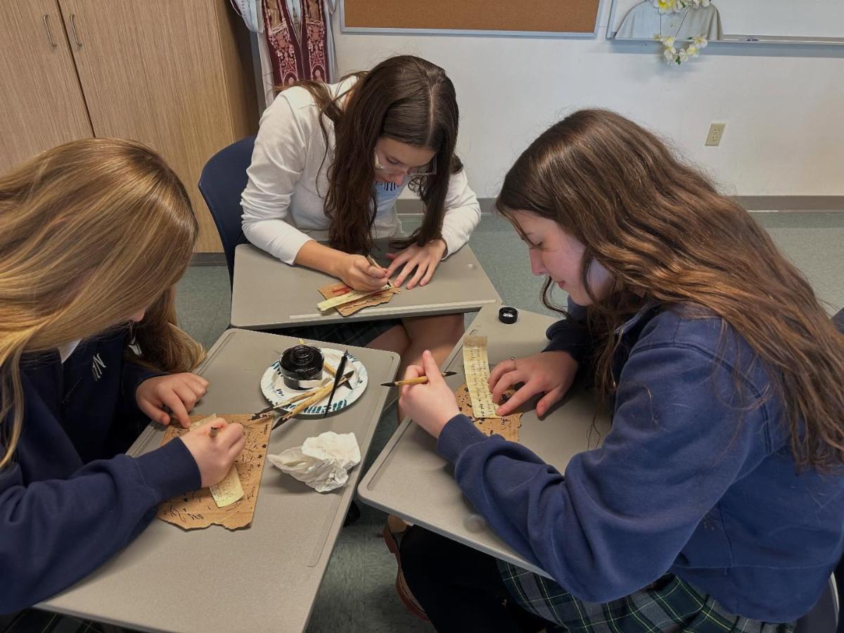 Students in Mr. Allen’s Theology classes tried their hands at writing New Testament passages on papyrus (handmade from Egypt) as they were originally written — in Ancient Greek!