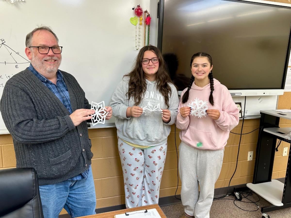 In Mr. Johnson's Geometry classes on Friday, in line with the frigid temperatures outside, students were able to cut out paper snowflakes as examples of symmetry!