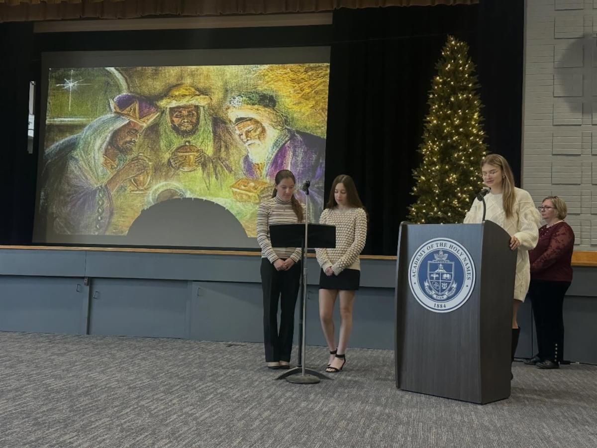 A prayer service was held Tuesday morning in the Riley Auditorium, followed by a special guest presenter in Profesora Gibbons’ seventh-grade Spanish class: Mrs. Murillo, mother of Shelly ‘31. She discussed how the holiday is celebrated in her home country of Ecuador, which included the sharing of “Rosca de Reyes” (Three Kings Bread). Inside each loaf was hidden three baby Jesus figurines.