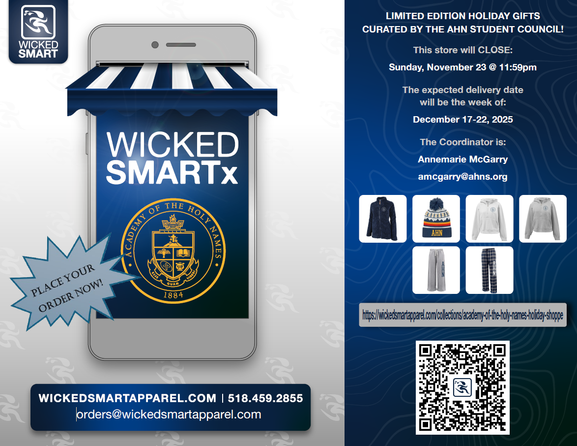 | | You can also purchase AHN apparel at Wicked Smart's Academy of the Holy Names Shoppe by clicking the image. | | |