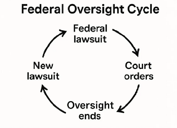 - Major reforms tend to follow federal court pressure—not proactive planning.