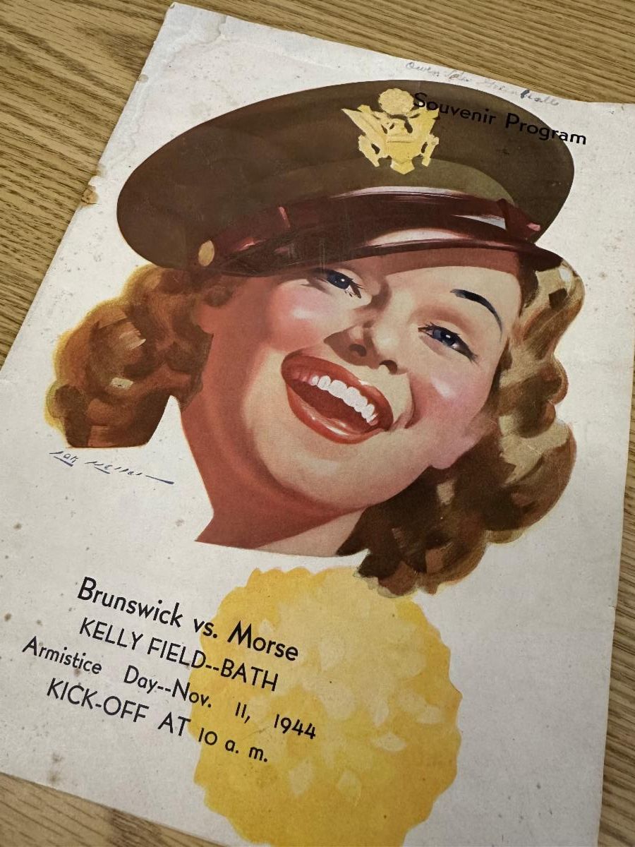 This month, we wanted to shine a spotlight on a recent acquisition: this program for a special football game between Morse High School and Brunswick in 1944! The program was donated by David Cooke of Phippsburg who wanted to be sure it would receive the attention it deserves.