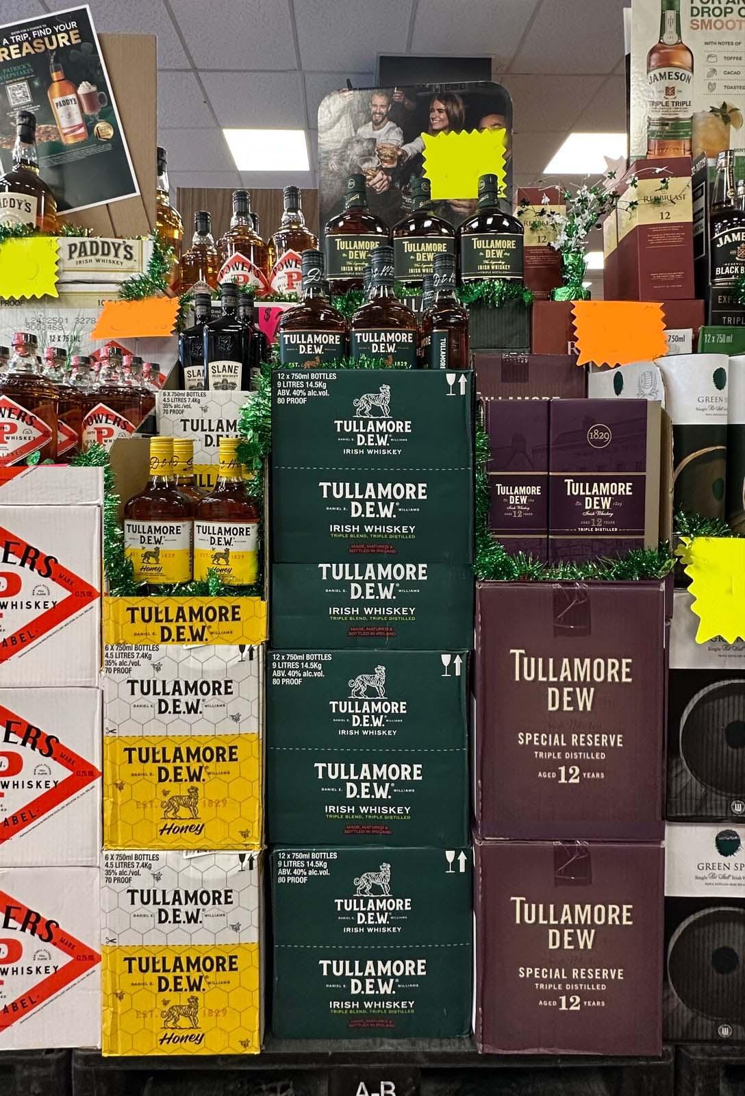 Check out these great Tullamore DEW Irish Whiskey displays reminding customers to grab a bottle this St. Patrick's Day.