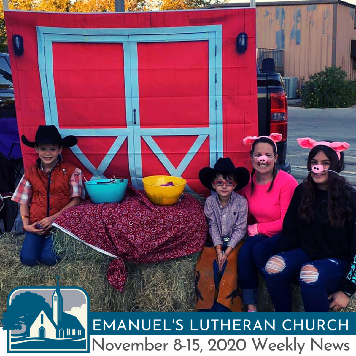 Because Lutherans know costumes really aren't optional: Shout out to everyone who came to the Emanuel's Day School Trunk or Treat on October 30th! It was a beautiful evening with excited, costumed tots and parents in tow. Some of the Ulrich clan and friends are pictured here at their adorably decorated barn-trunk. More pics of the festivities below. We are in this together. WE ARE BETTER TOGETHER. We may be apart, but we are not alone.