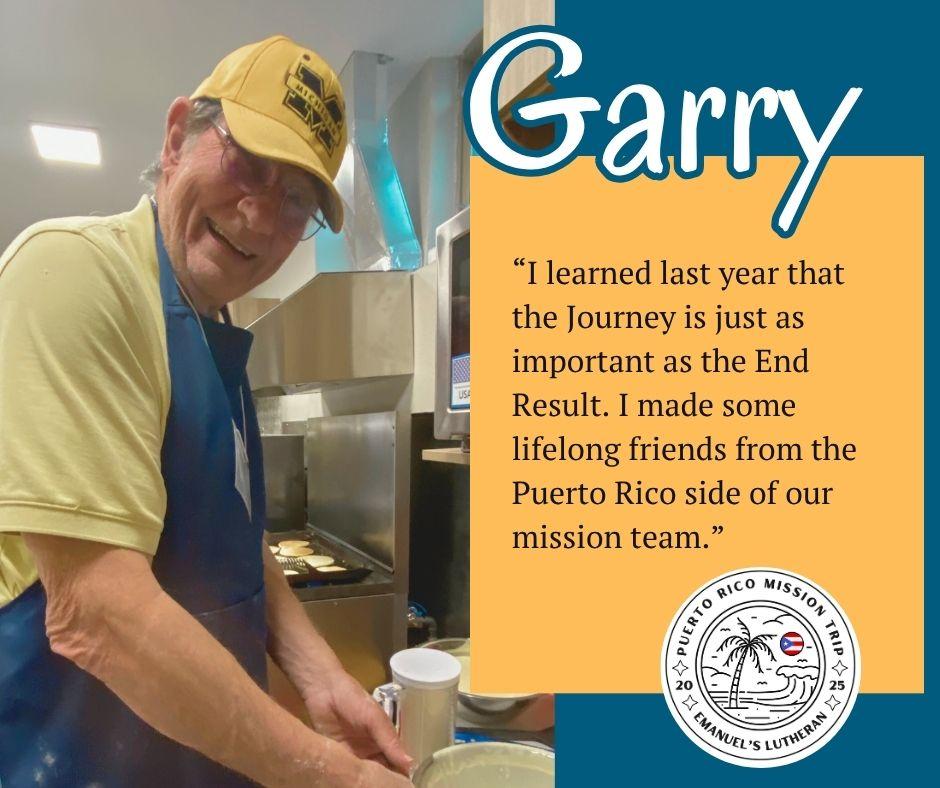 Garry's first mission trip was last year's Capilla Mission in Puerto Rico. "I learned that the Journey is just as important as the End Result. I made some lifelong friends from the Puerto Rico side of our mission team. I also learned how important it is to be ready to adjust to conditions and changing design criteria; but with an attitude that trusts God to lead us where he will." He is looking forward to working with new team members, catching up with last year's volunteers, and deepening his faith. Garry would also like to learn a little more Spanish and gain some proficiency in new areas of construction.