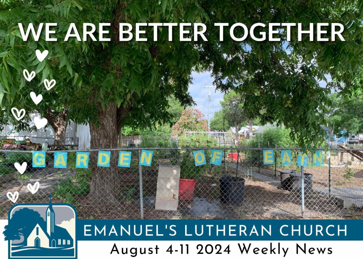 Because Lutherans care for God's beautiful world. The Garden of Eatin' was born in early 2013 when Mike Haug and "Lefty" Redix began discussing gardening. Seeds of love planted then are still growing today. All are invited to join The Outreach and Service Team in the Garden of Eatin’ (and grab a hot dog) on Saturday, August 10 starting at 8:30am. There are projects for everyone, so grab a hat, some gloves, and come celebrate creation with us. We are better together.
