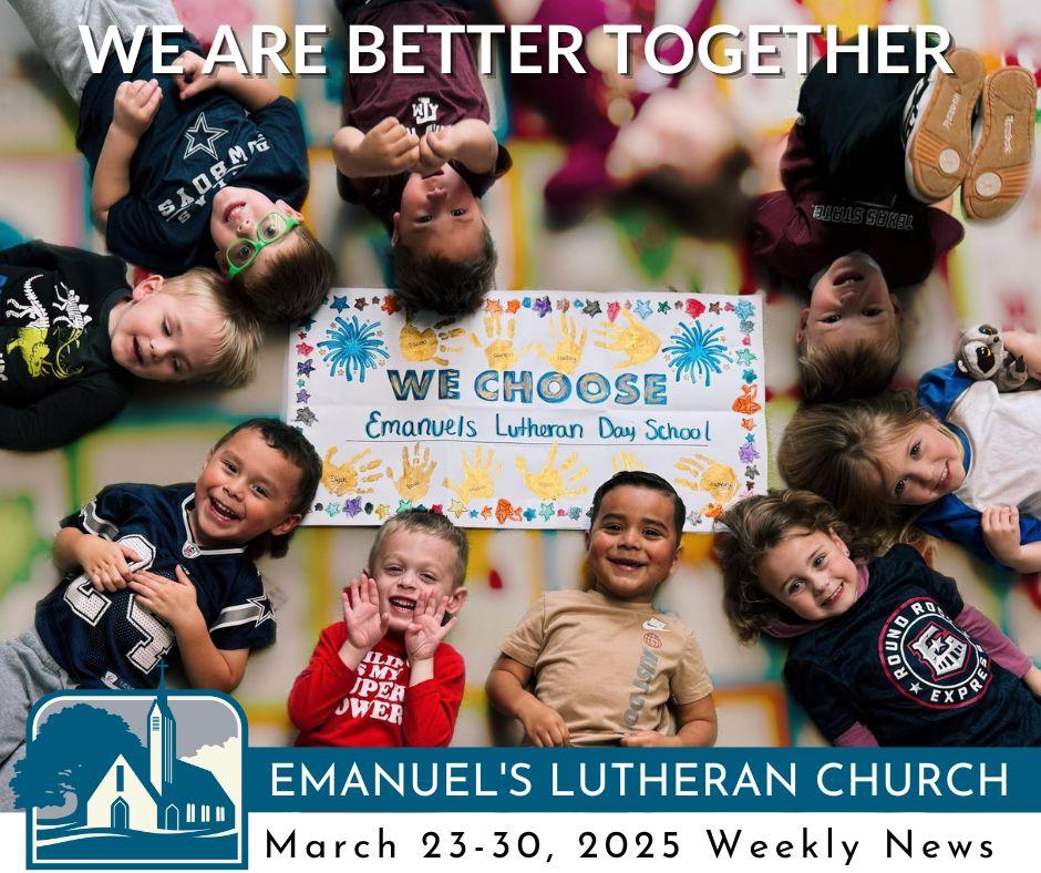 Because Lutherans love the newness of spring. It is joyous to hear our Day School friends frolicking on the playground and buzzing about the halls this time of year. May we all find time to experience the wonders of a new season. "Dear God, as the flowers bloom and the trees grow, help us to grow in kindness, wisdom, and love. Guide our hands and hearts as we learn and play. Amen." We are better together.