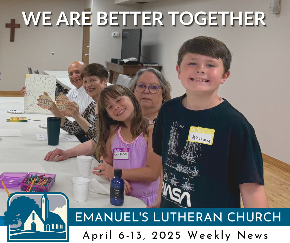 Emanuel’s invites you to use the Luther Seminary 2025 Lenten devotional, “There in God’s Garden” for daily personal study and reflection. Simply download the pdf here to your phone or computer.