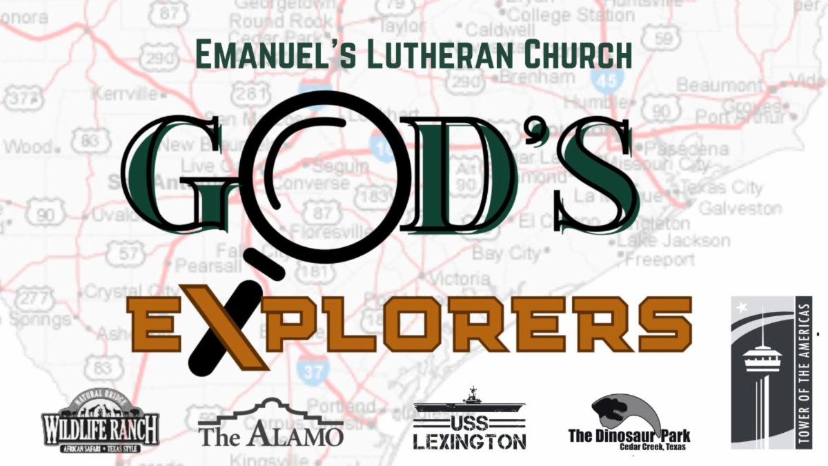 | | SENIOR SOCIAL CLUB BUS & TRAIN TO BURNET on Saturday, May 3 has 3 extra seats available on the bus and train. If you are interested in going, please let donna@elcseguin.org know so she can add your name. Once filled then a waitlist will be formed. The cost per person for the bus and train ride is $65. Lunch in Burnet will be on your own and there is also a concession car on the train. Make your check payable to Emanuel's Lutheran Church with May 3rd bus trip on the memo line. | | GOD'S EXPLORERS: FAITH & SCIENCE COME ALIVE is open and ready for registration for all 3rd to 8th grade youth. Hosted June 30 to July 3, from 8am to 5pm, this incredible group of youth, chaperones, and pastors will traverse central Texas visiting the USS Lexington, the Alamo & Tower of the Americas, the Dinosaur Park, and the Safari at Natural Bridge Caverns. We will eat together, have Bible studies, and explore each of these fascinating locations. All participants must have turned in their registration form in order to participate. The only costs incurred by each youth will be any souvenirs they wish to purchase. | |